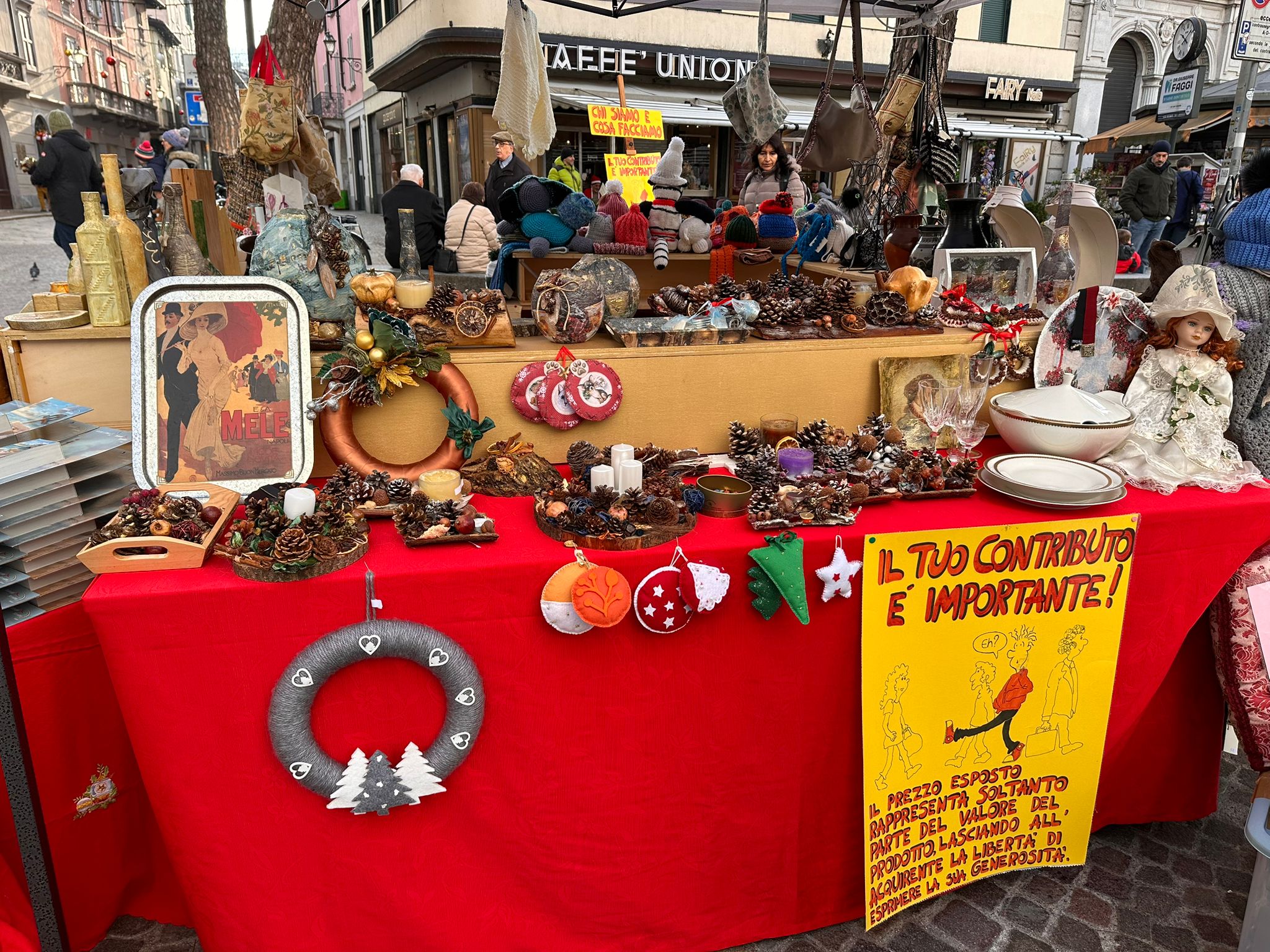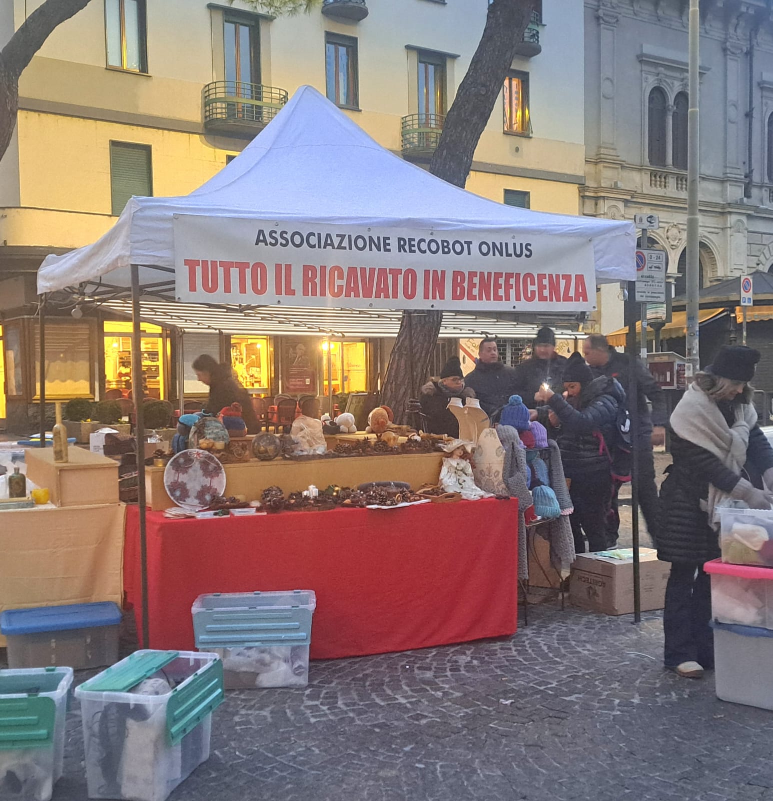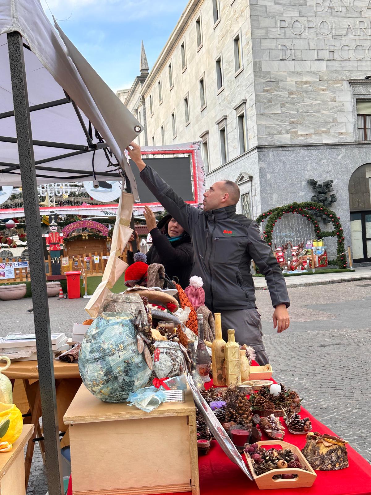Ci siamo poi recati in Lecco centro, dove i fratelli e le sorelle hanno preparato il Gazebo con i tavoli tutti allestiti dagli oggetti realizzati dalle sorelle e qualche oggetto donato.