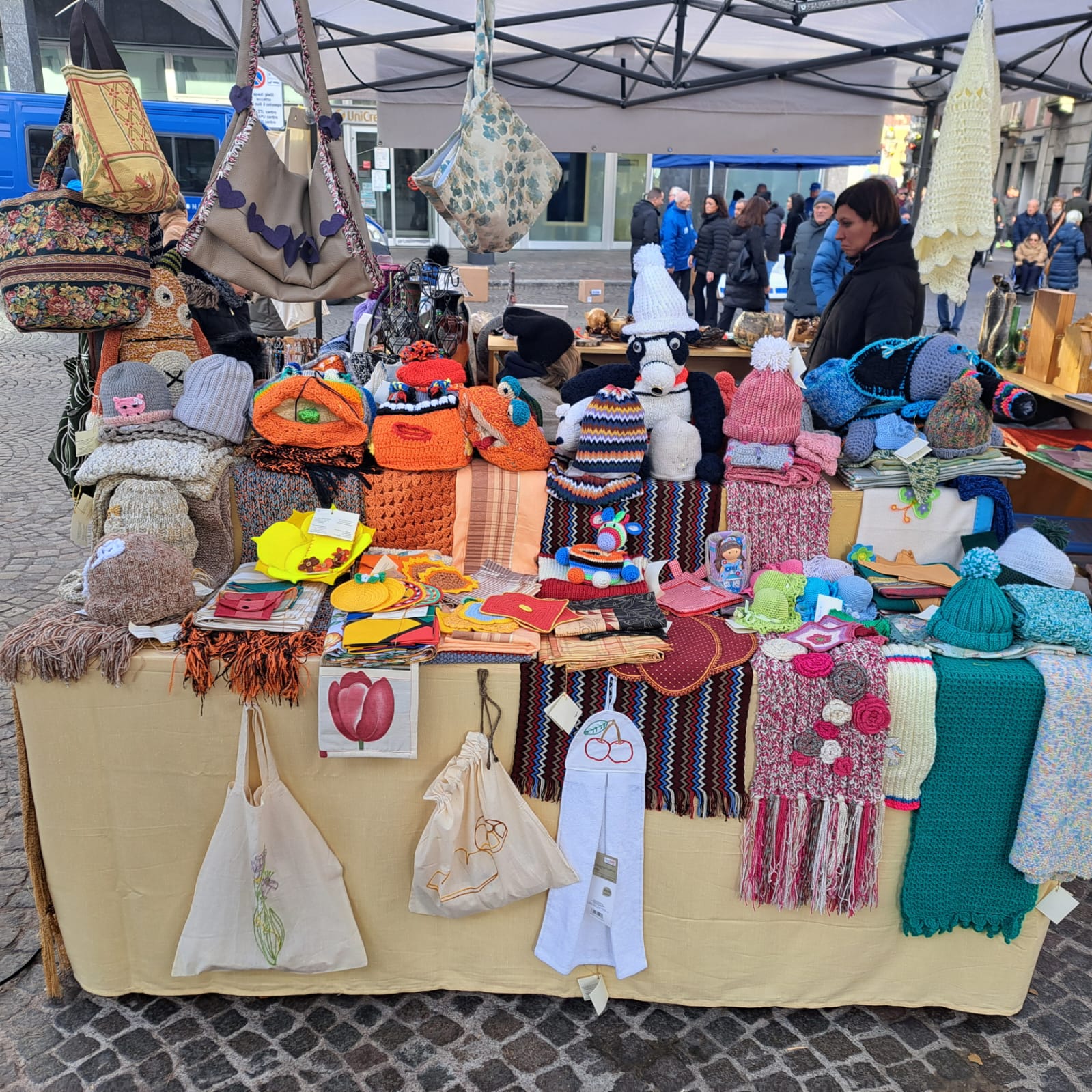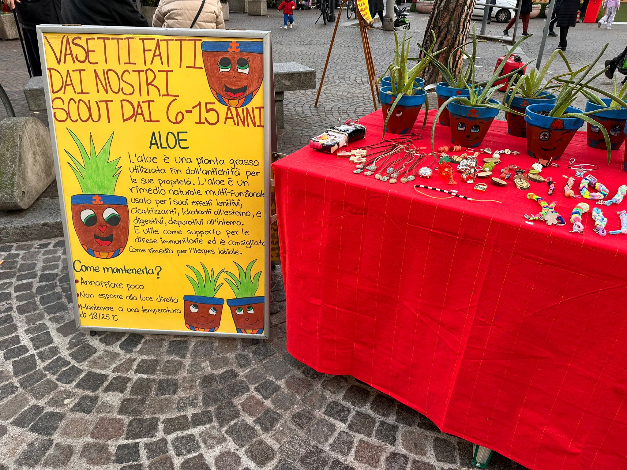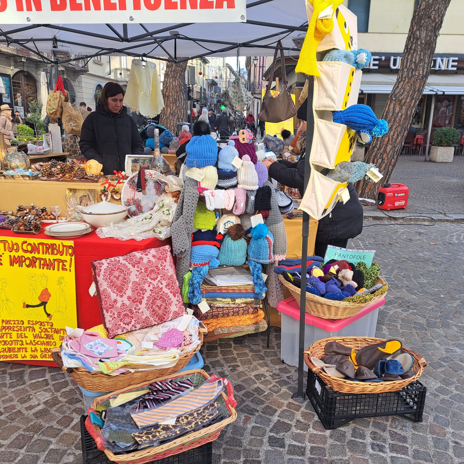 Ci siamo poi recati in Lecco centro, dove i fratelli e le sorelle hanno preparato il Gazebo con i tavoli tutti allestiti dagli oggetti realizzati dalle sorelle e qualche oggetto donato.